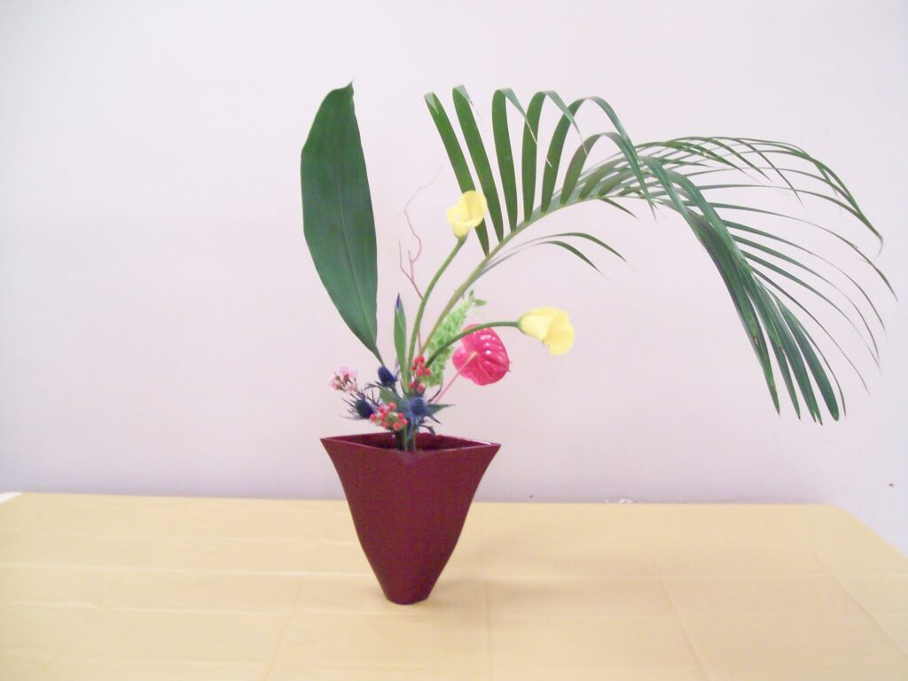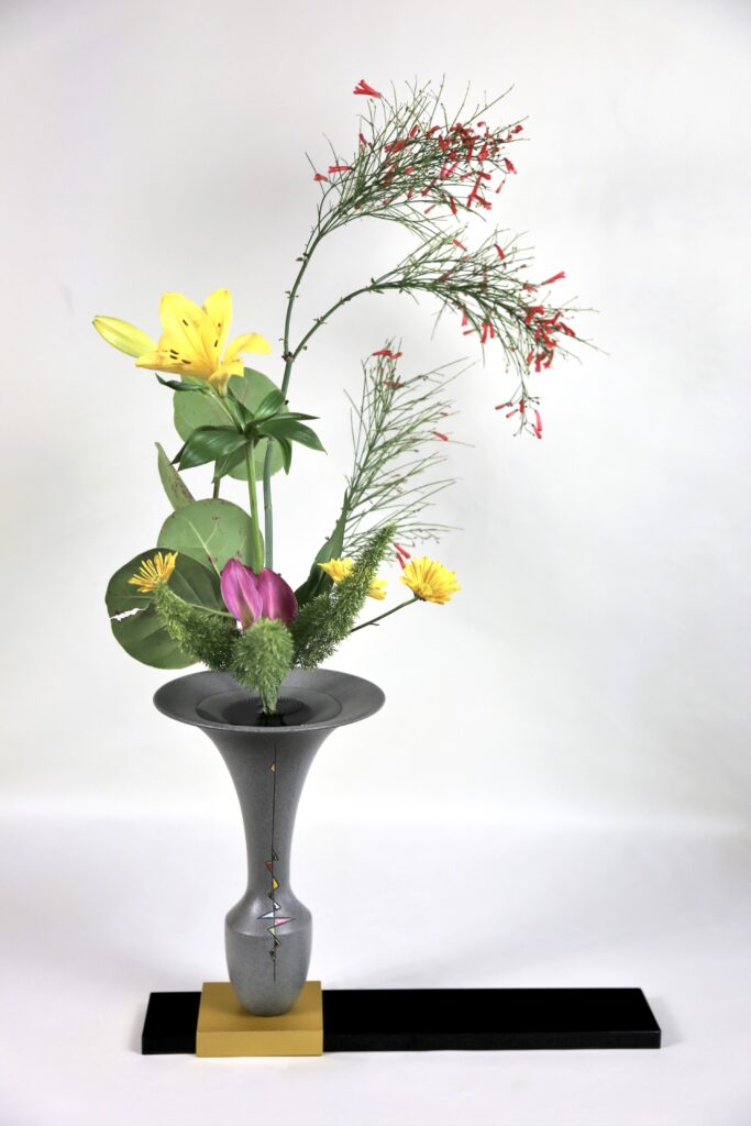- Any two different containers – Type A, C, D, G or G container with opening large enough for a 2-3″ diameter kenzan. Tatehana vases can be used for a Shoka Shimputai, but not for a Rikka Shimputai.! A more modern container is preferred for any Shimputai designs and you may bring a free style container if there is enough time for a bonus arrangement with left over materials.