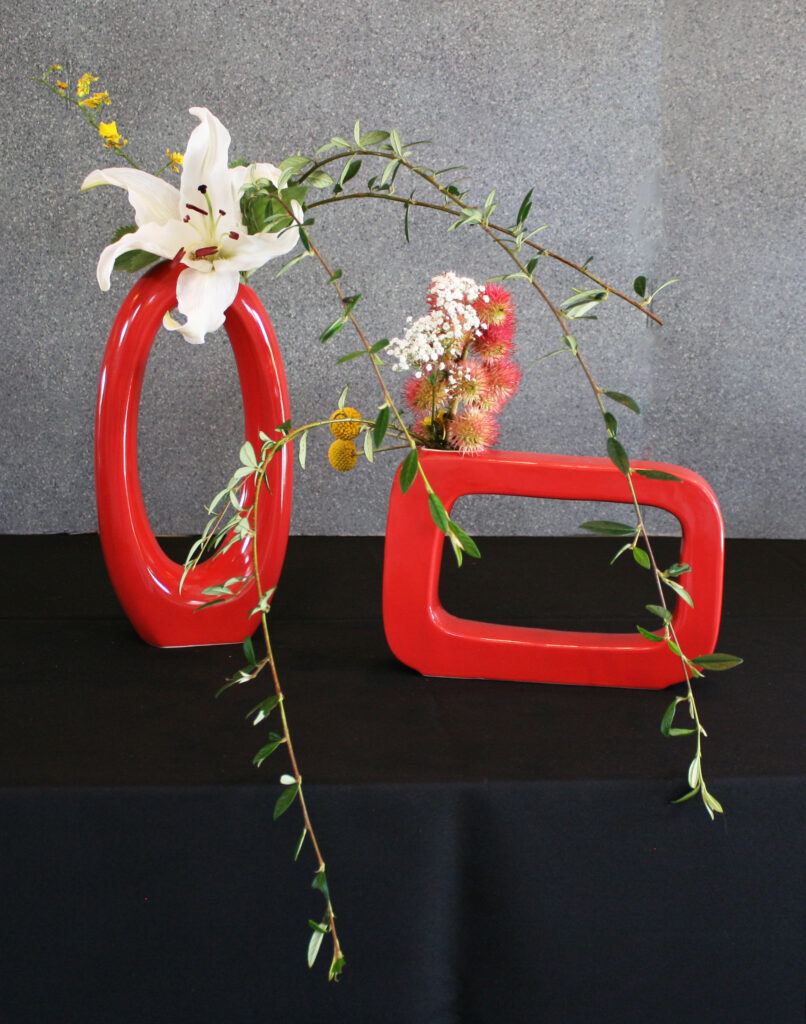 • At least two vases that you could use as a centerpiece on a dining table. Should be a low bowl or suiban as depicted above. Your wire and tape are essential.